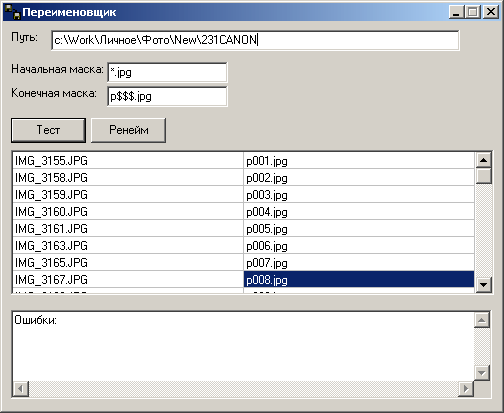 Renamer. Переименовщик Программка переименования группы файлов по маске.